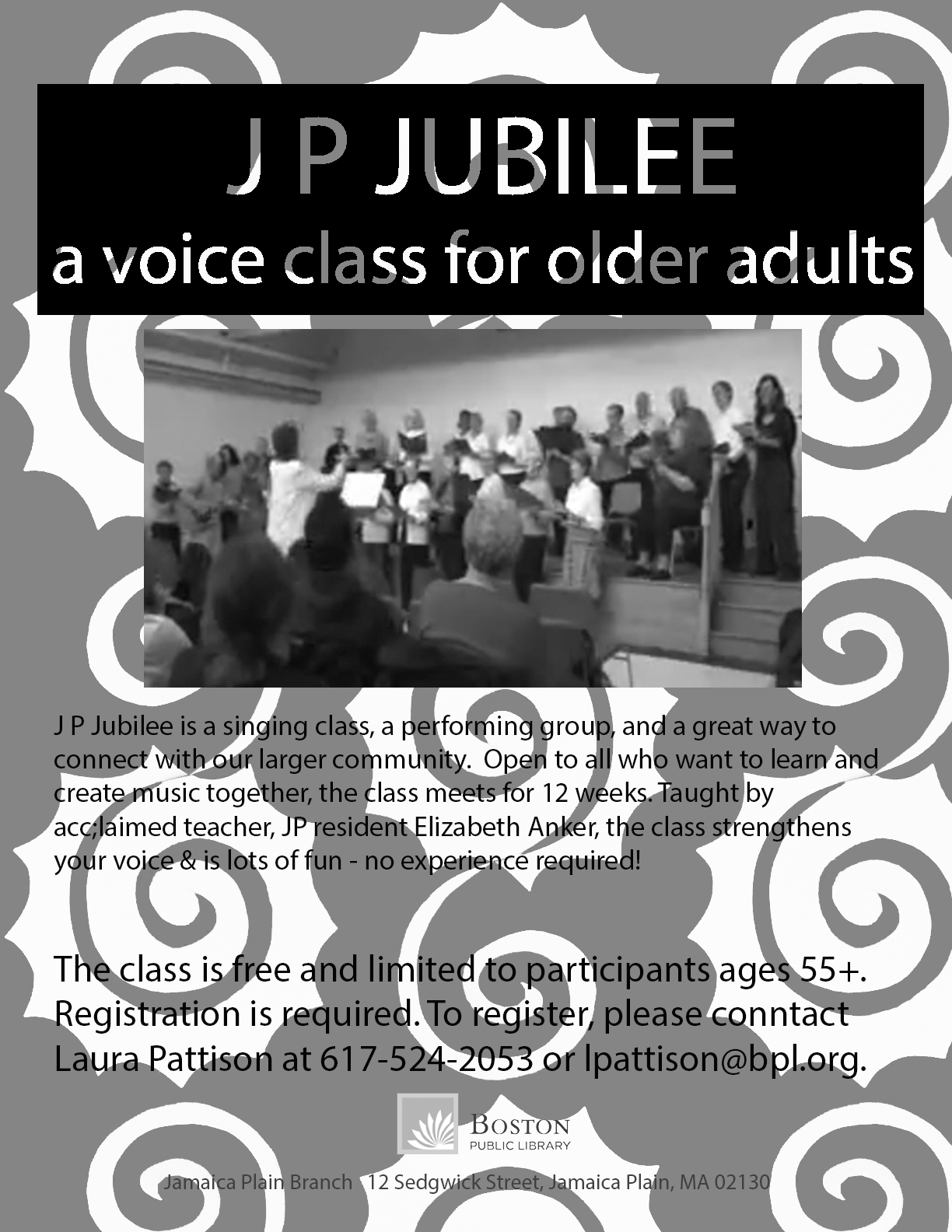 If you want to join the JP Jubilee singing group, the wait is until February 19, 2016.  Contact me for further info about this group that meets on Friday mornings, and, like the Platinum Singers, is a class and a performing group.  We meet at Curtis Hall in Jamaica Plain.